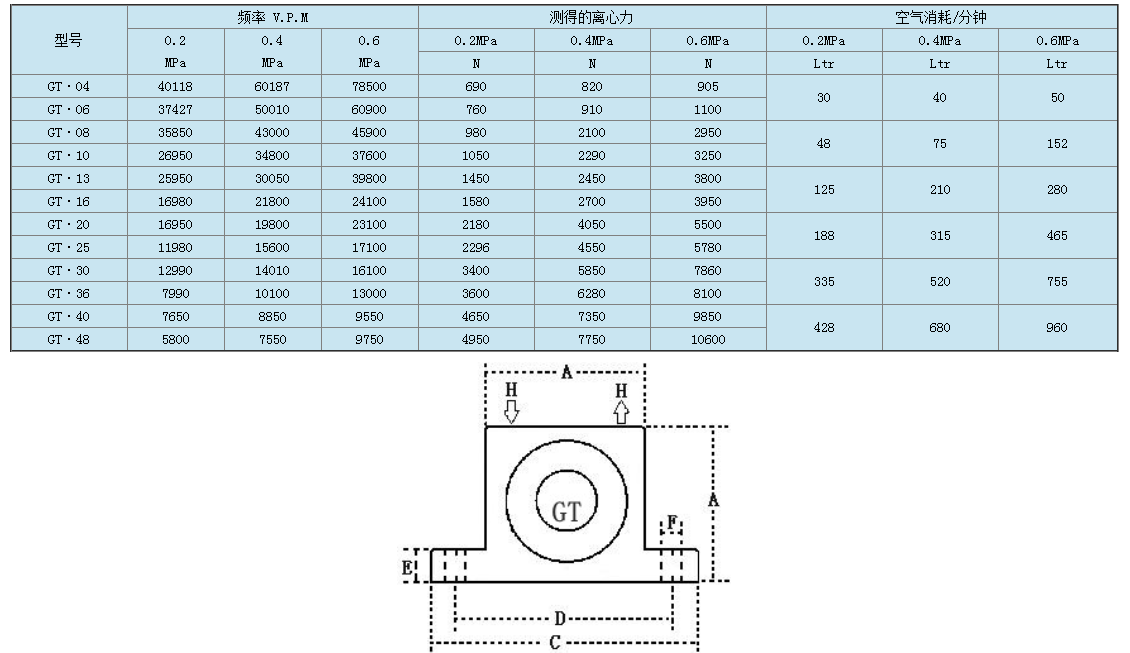 氣動渦輪振動器GT系列GT04GT06GT08GT10GT13GT16GT20GT25GT30GT36GT40GT48