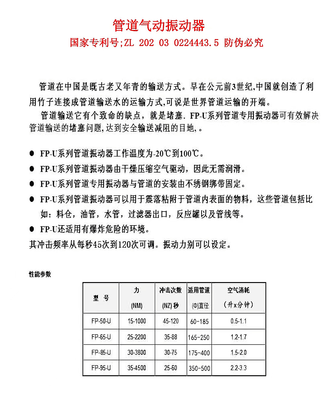 管道氣動(dòng)振動(dòng)器 FP-25-U/FP-35-U 定向輸送式/管道振動(dòng)器